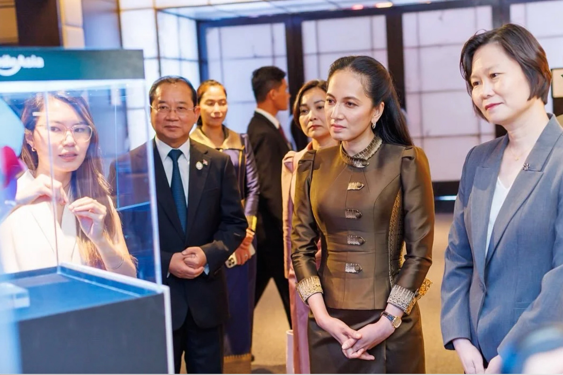Dr. Pich Chanmony, Primeira-Ministra do Camboja, apreciando a exposição.